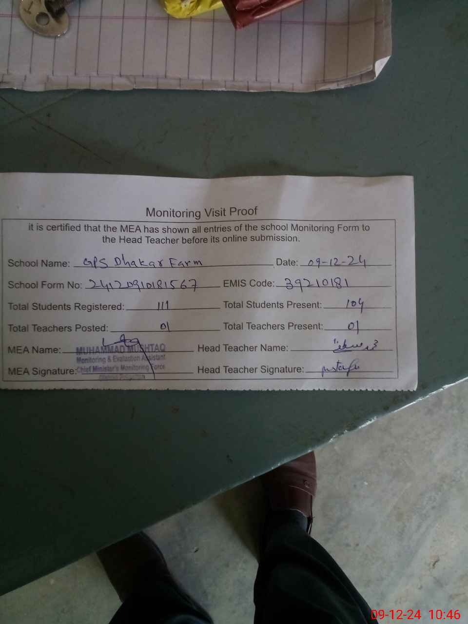 | EMIS Code: 39210181 | Name of School: GPS DHAKAR FARM PO PAKPATTAN | |||