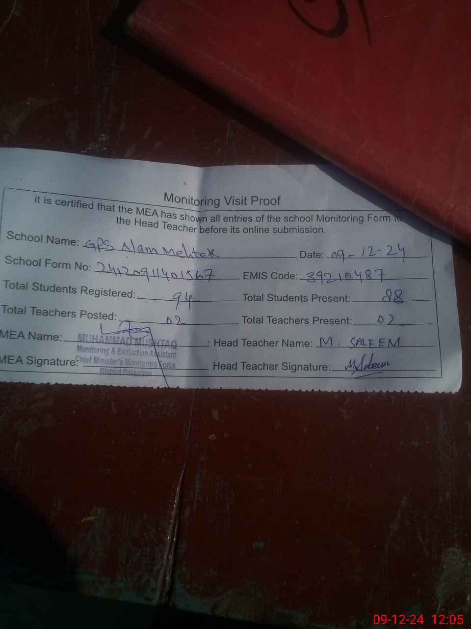 | EMIS Code: 39210487 | Name of School: GPS ALAM MEHTEKA PO PAKPATTAN | |||