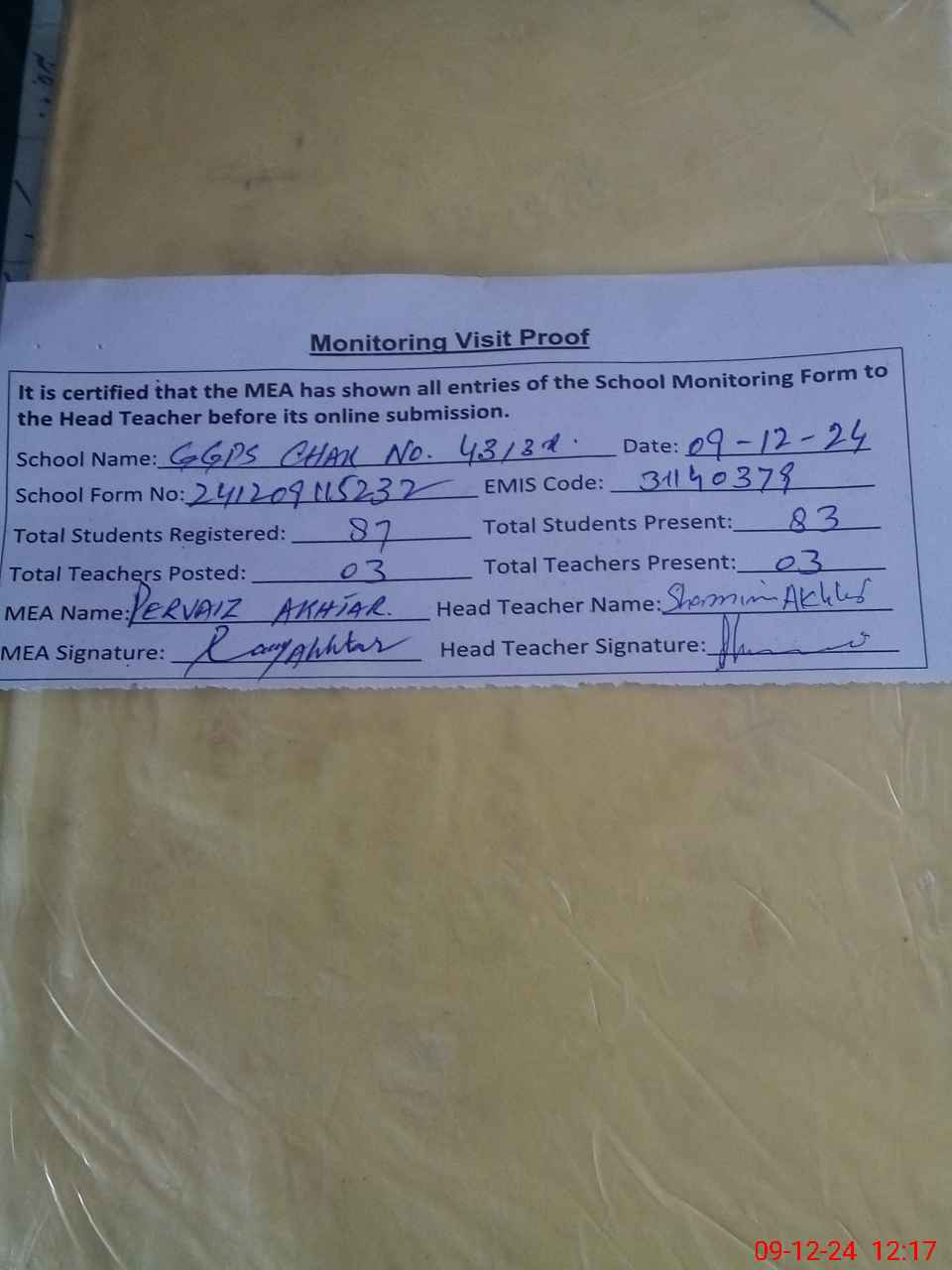 | EMIS Code: 31140379 | Name of School: GGPS CHAK NO 43/3-R | |||