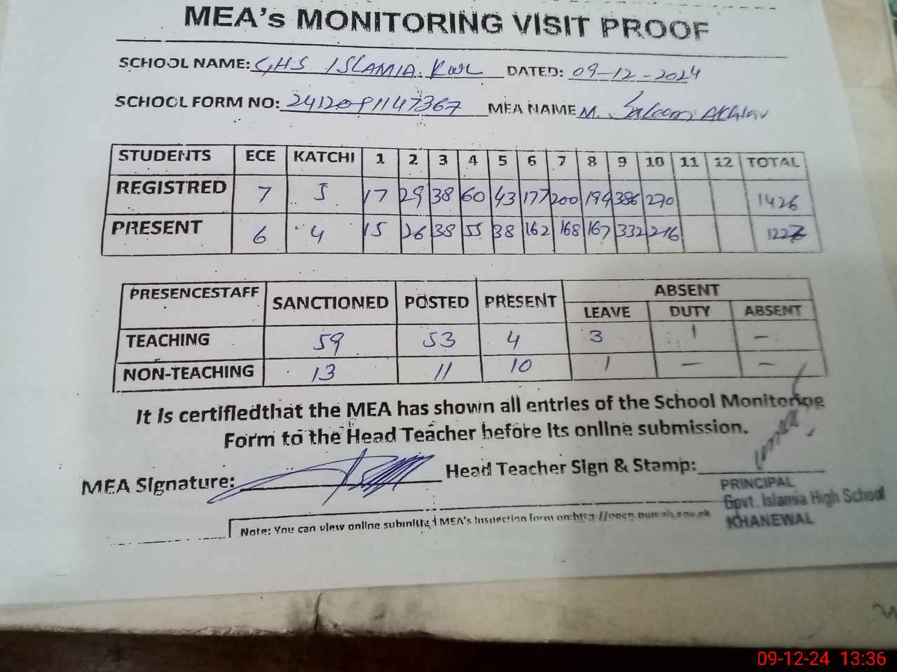 | EMIS Code: 36420003 | Name of School: GHS ISLAMIA KHANEWAL | |||