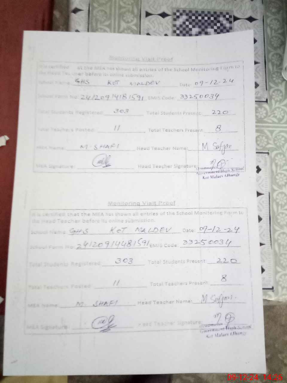 | EMIS Code: 33250034 | Name of School: GHS KOT MALDEV | |||