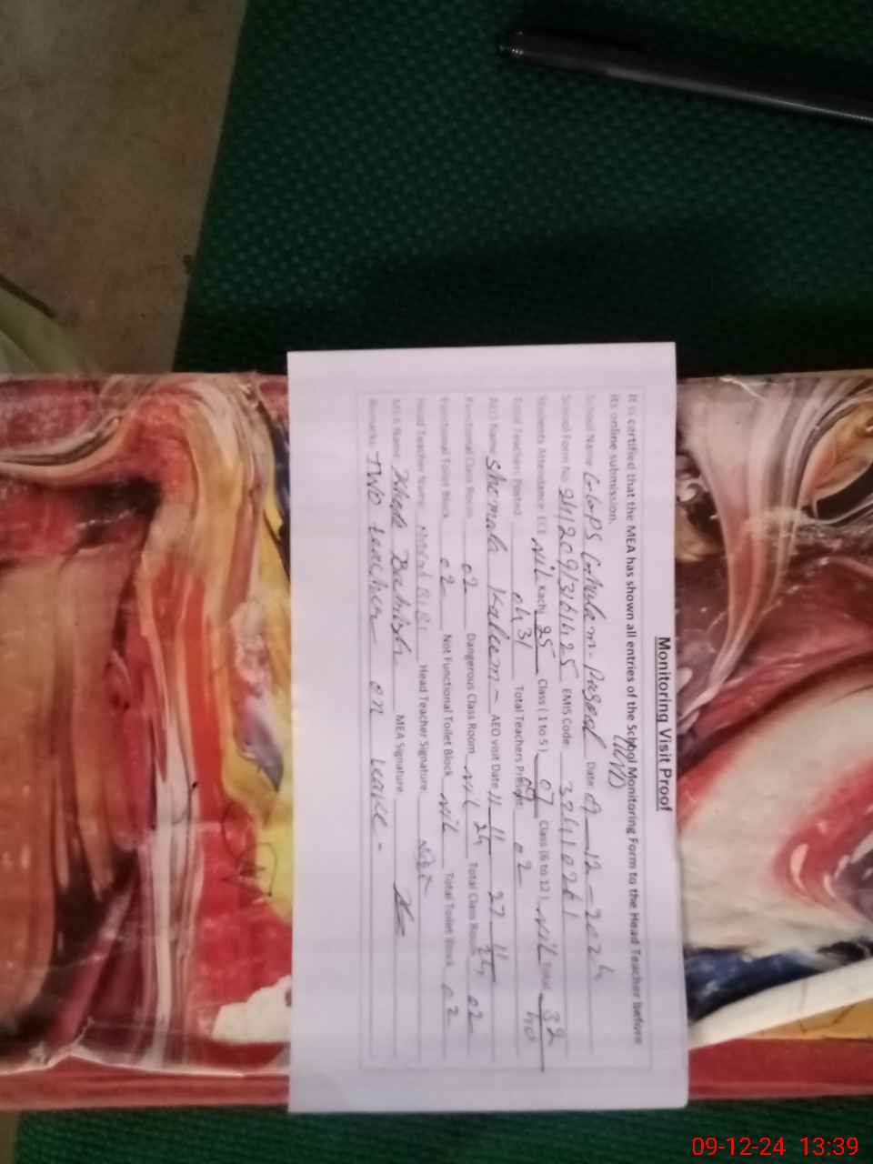 | EMIS Code: 32410261 | Name of School: GGPS GHULAM RASOOL LUND | |||