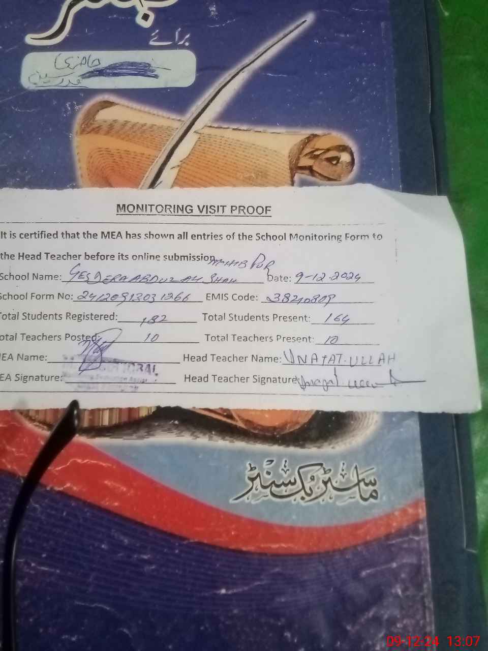 | Attendance Register | Head Teacher | MEA with School | Visit Proof |