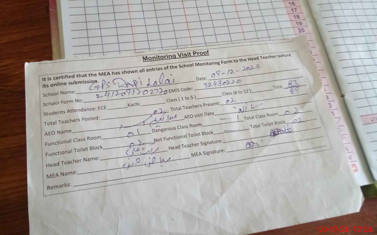 | Attendance Register | Head Teacher | MEA with School | Visit Proof |