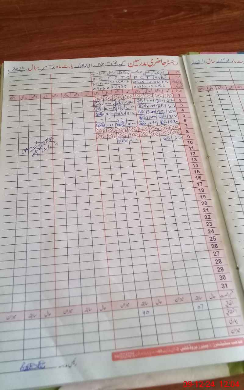 | CNIC | Full Name | Designation | R/C | Absence During Last Calender Month |