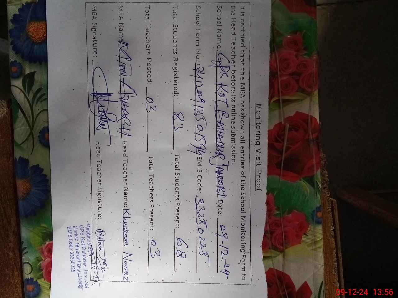 | EMIS Code: 33250225 | Name of School: GPS KOT BAHADAR JANOOBI | |||