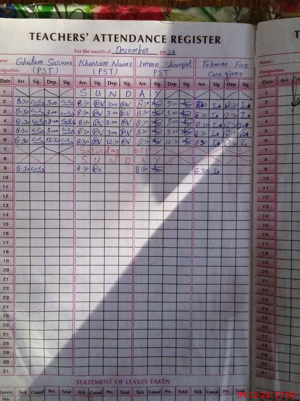 | CNIC | Full Name | Designation | R/C | Absence During Last Calender Month |