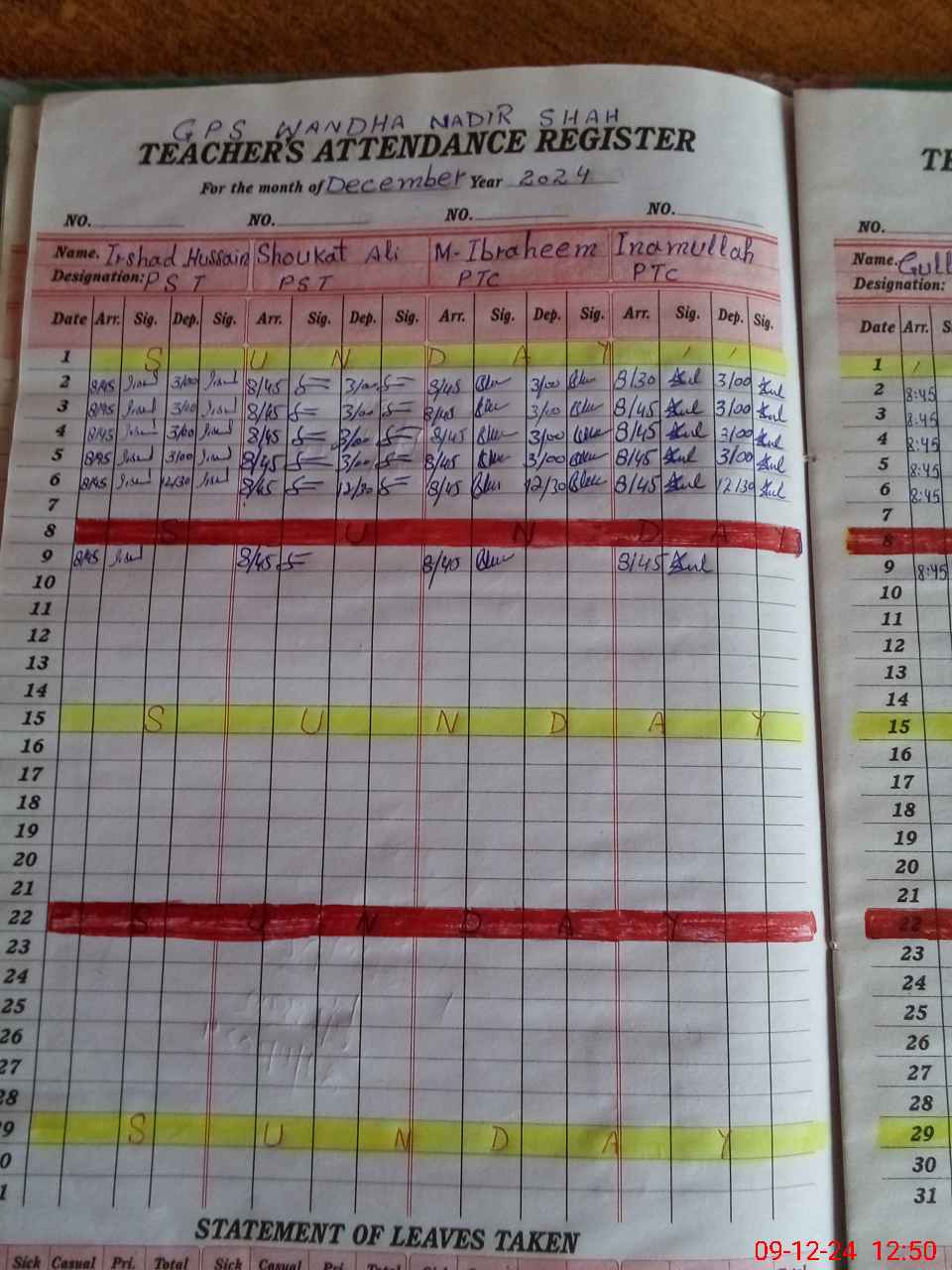 | CNIC | Full Name | Designation | R/C | Absence During Last Calender Month |