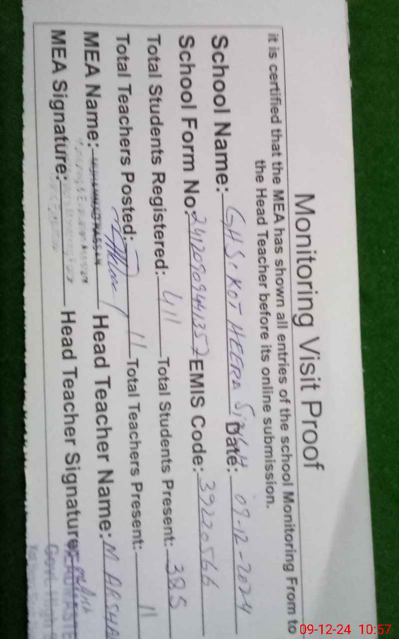 | EMIS Code: 39220566 | Name of School: GHS KOT HEERASINGH P.O SAME | |||