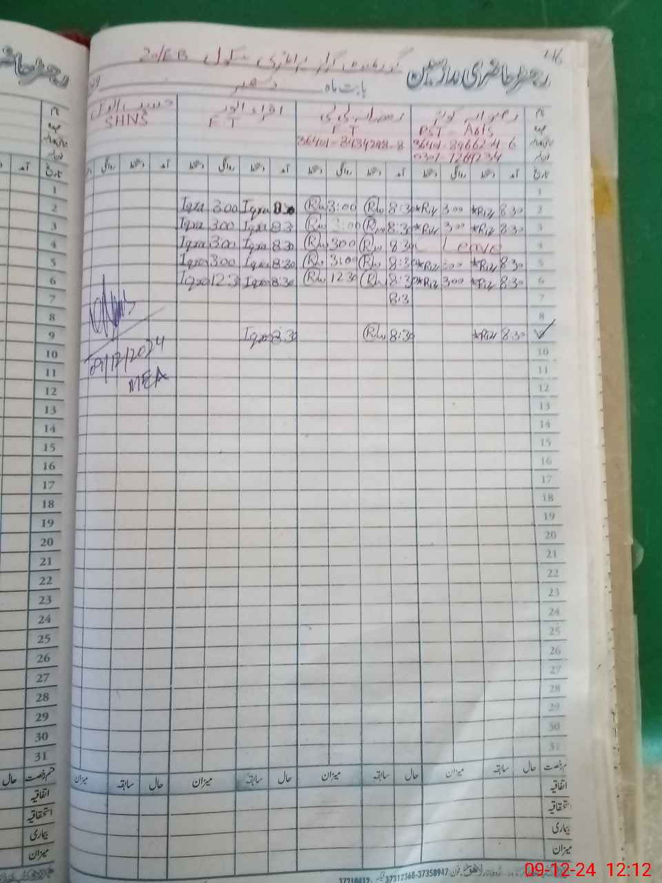 | Name: Sh**** Kh**** Designation: (School Headmaster's/Headmistress's) EST Phone/Cell Number: 03**** |
