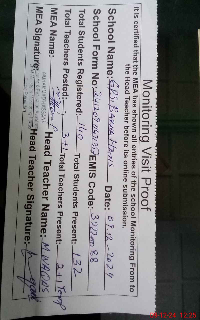 | EMIS Code: 39220088 | Name of School: GPS BAKHA HANS | |||