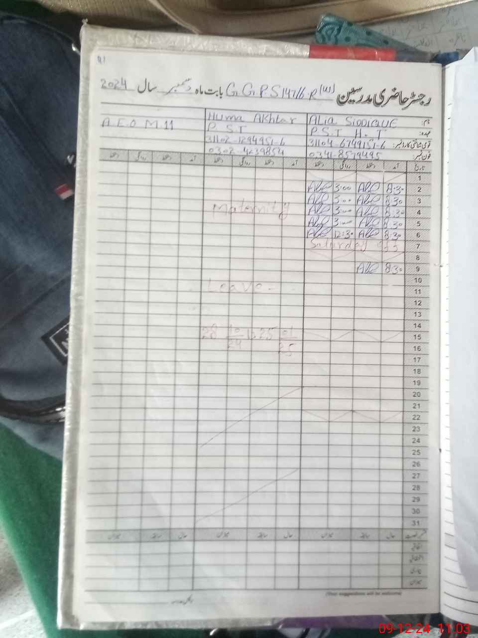 | Name: Al**** Si**** Designation: (School Headmaster's/Headmistress's) PST Phone/Cell Number: 03**** |