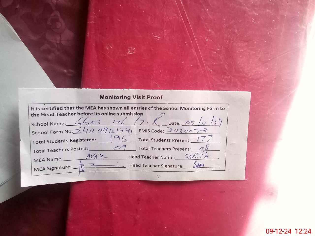 | EMIS Code: 31130073 | Name of School: GGES CHAK NO.176/7-R | |||