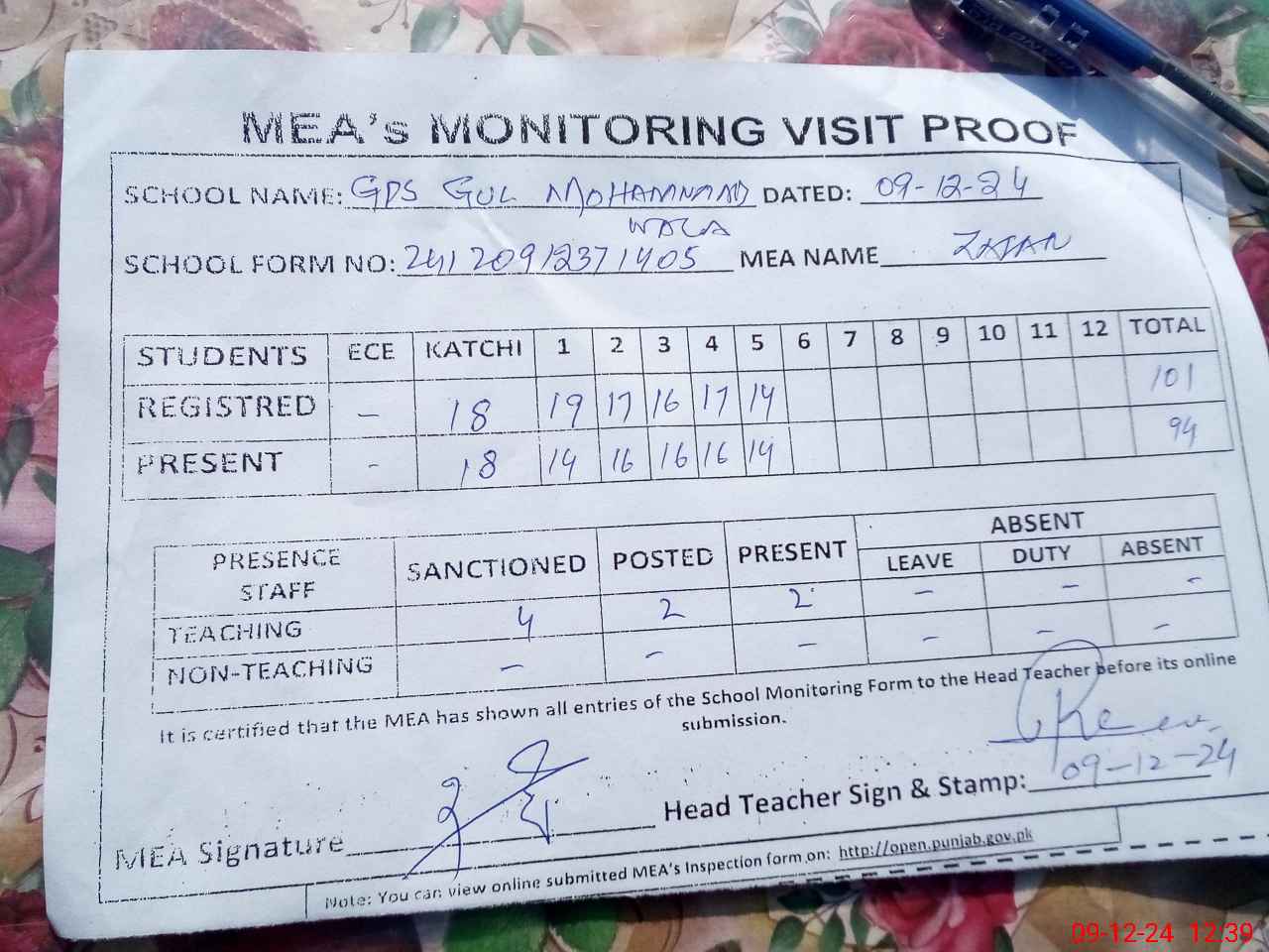 | EMIS Code: 36410232 | Name of School: GPS GUL MUHAMMAD WALA, SARAI SIDHU | |||