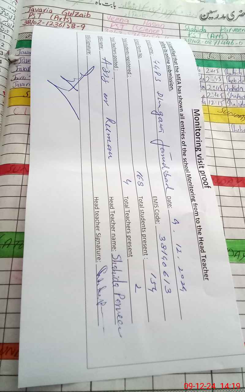 | EMIS Code: 38140613 | Name of School: GGPS DHAGANA JAVED ABAD | |||