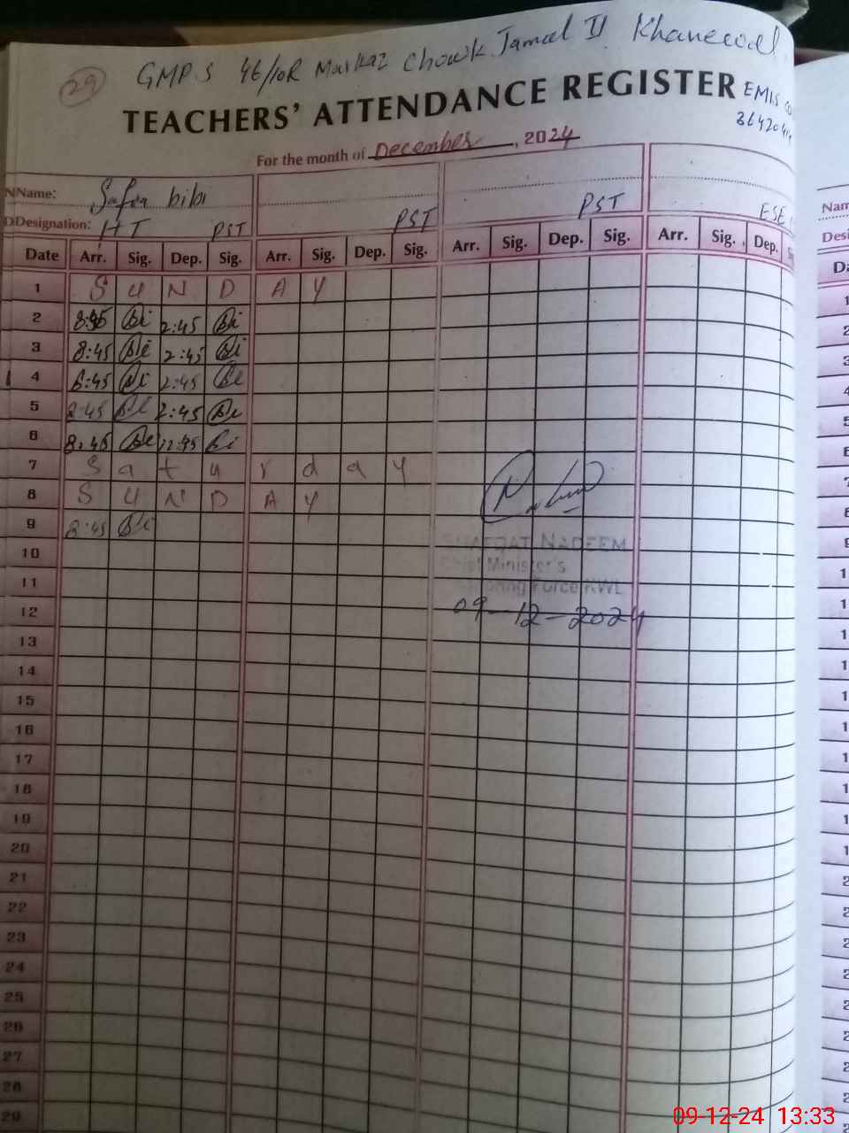 | Name: Sa**** Bi**** Designation: (School Headmaster's/Headmistress's) PST Phone/Cell Number: 03**** |