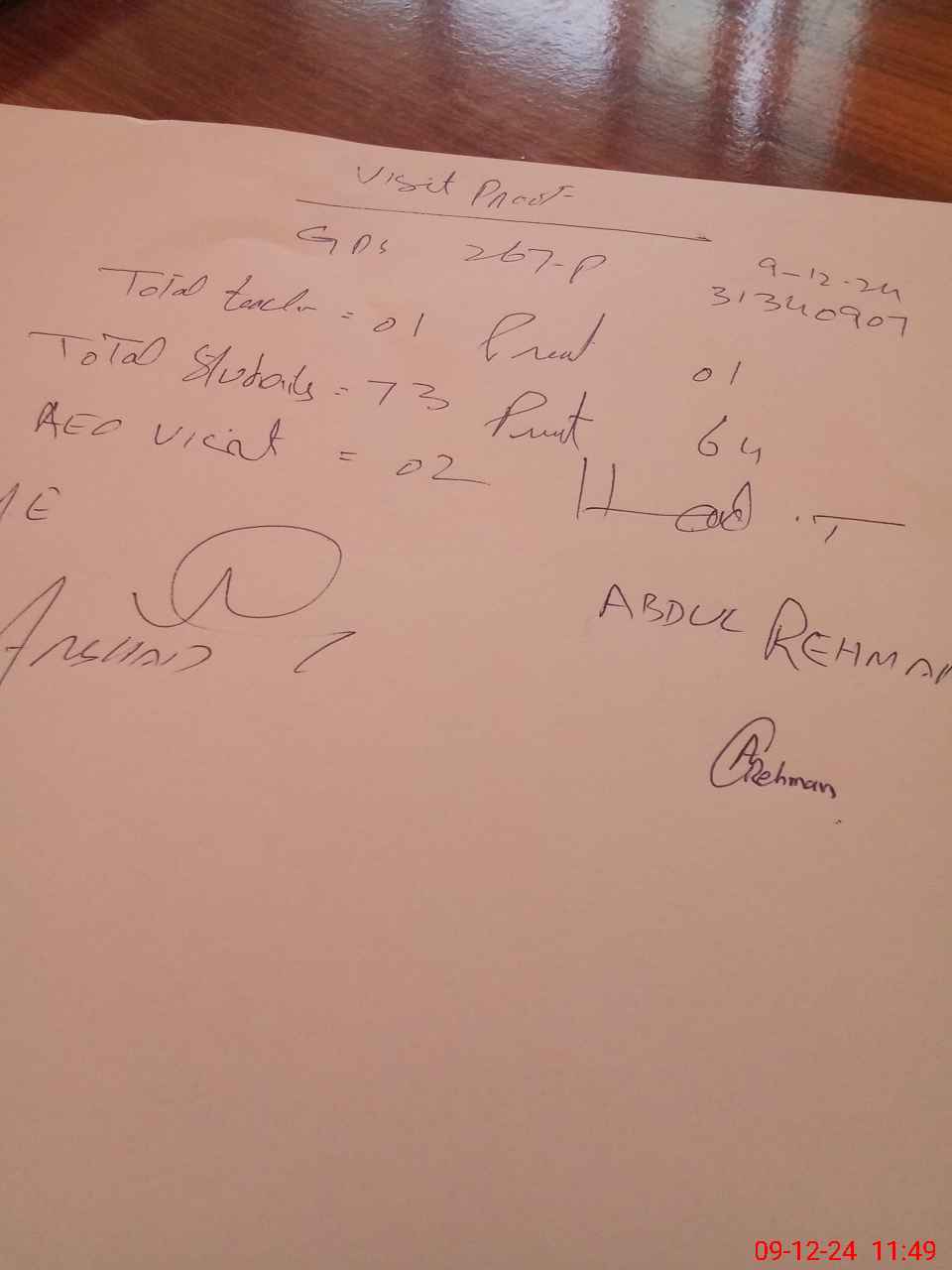 | EMIS Code: 31340907 | Name of School: GPS CHAK NO. 267/P | |||