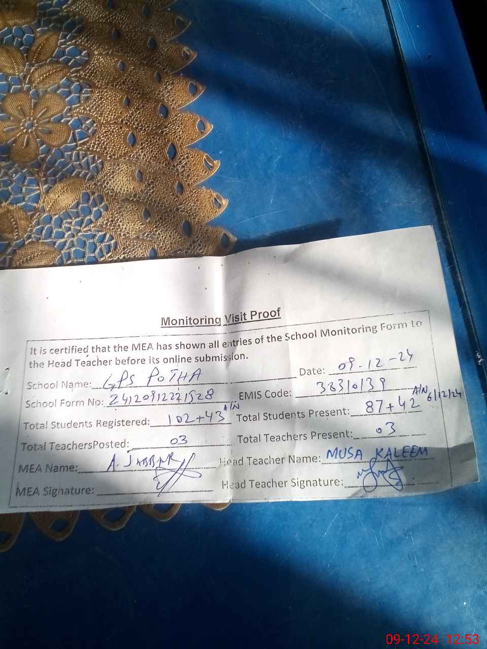 | EMIS Code: 38310139 | Name of School: GPS POTHA | |||