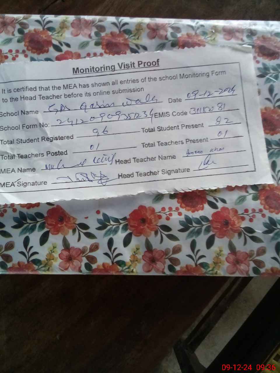 | EMIS Code: 31150081 | Name of School: GPS QASIM WALA | |||