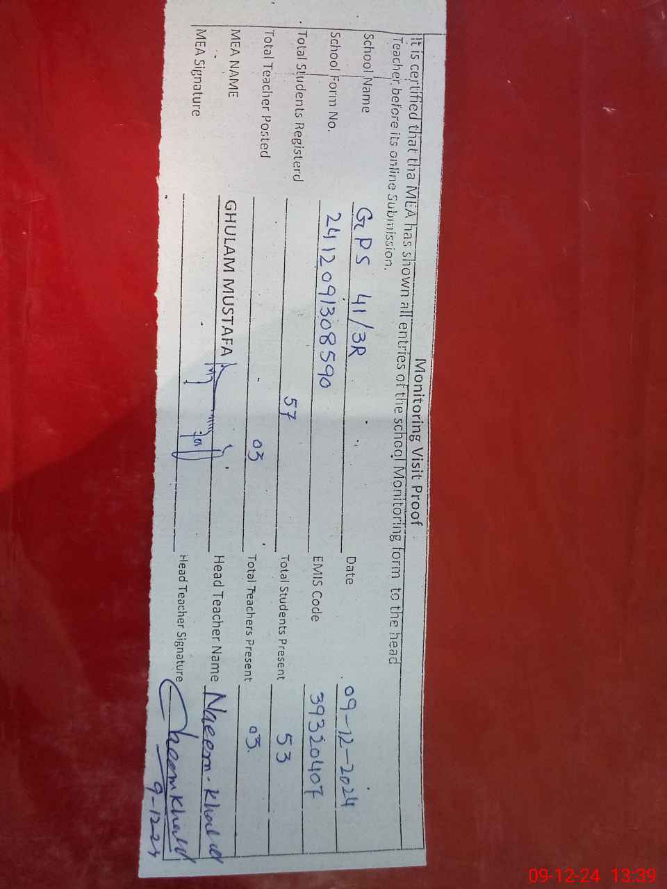 | EMIS Code: 39320407 | Name of School: GPS 41/3-R | |||
