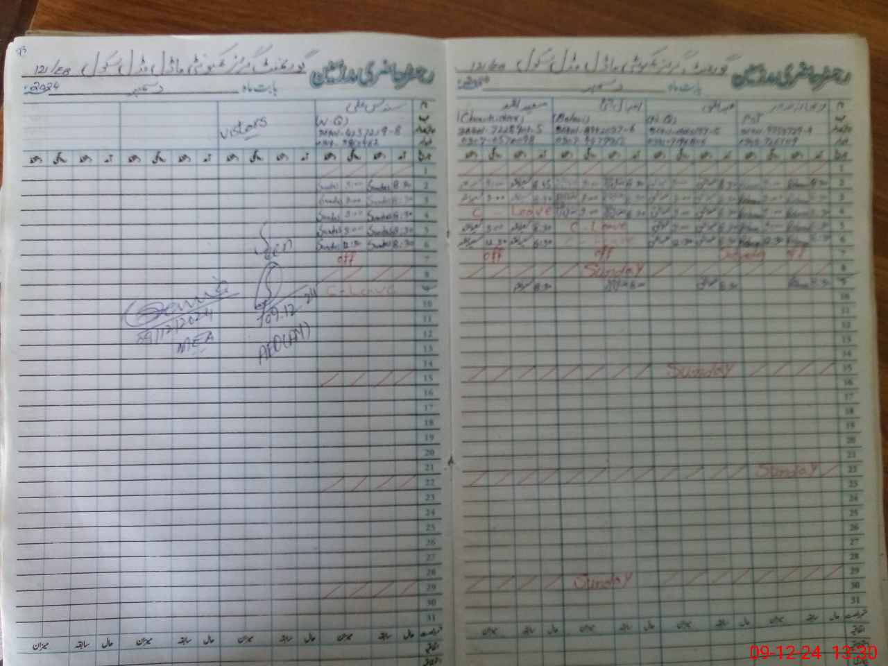 | CNIC | Full Name | Designation | R/C | Absence During Last Calender Month |