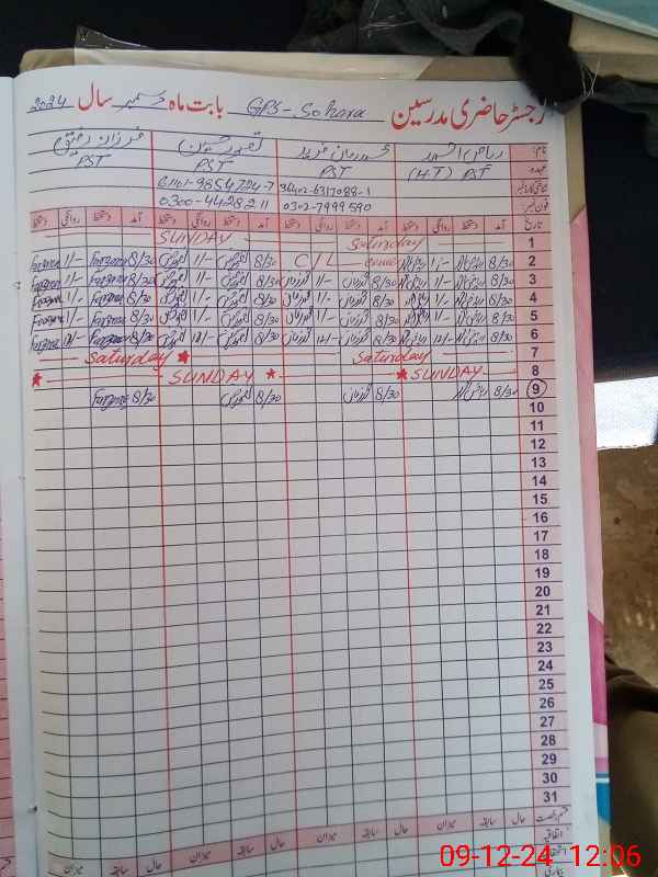 | Name: RI**** AH**** Designation: (School Headmaster's/Headmistress's) PST Phone/Cell Number: 03**** |
