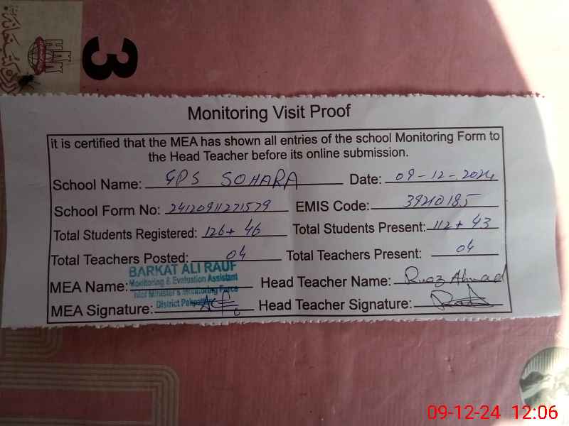 | EMIS Code: 39210185 | Name of School: GPS SOHARA | |||
