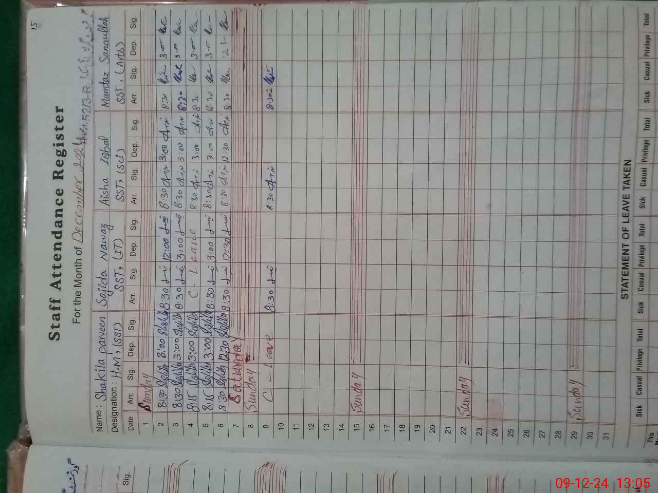 | CNIC | Full Name | Designation | R/C | Absence During Last Calender Month |