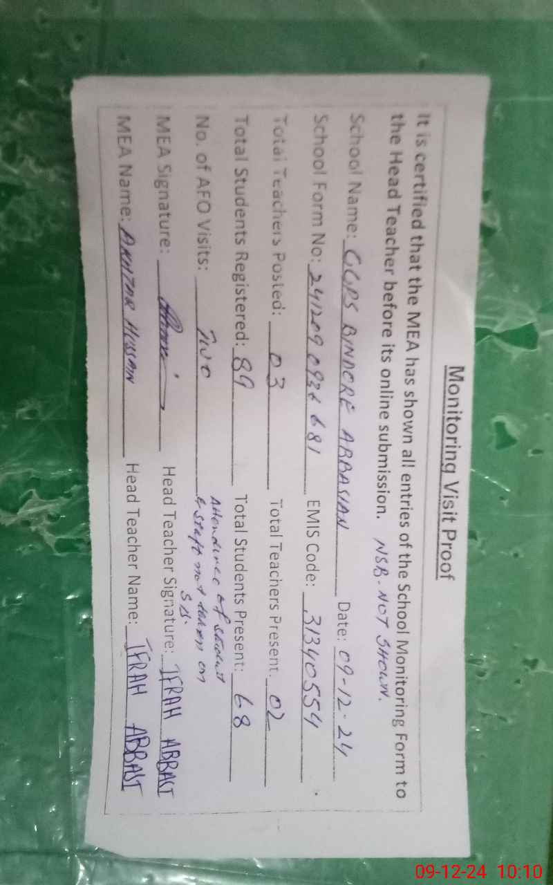 | EMIS Code: 31340554 | Name of School: GGPS BINDORE ABBASIAN | |||