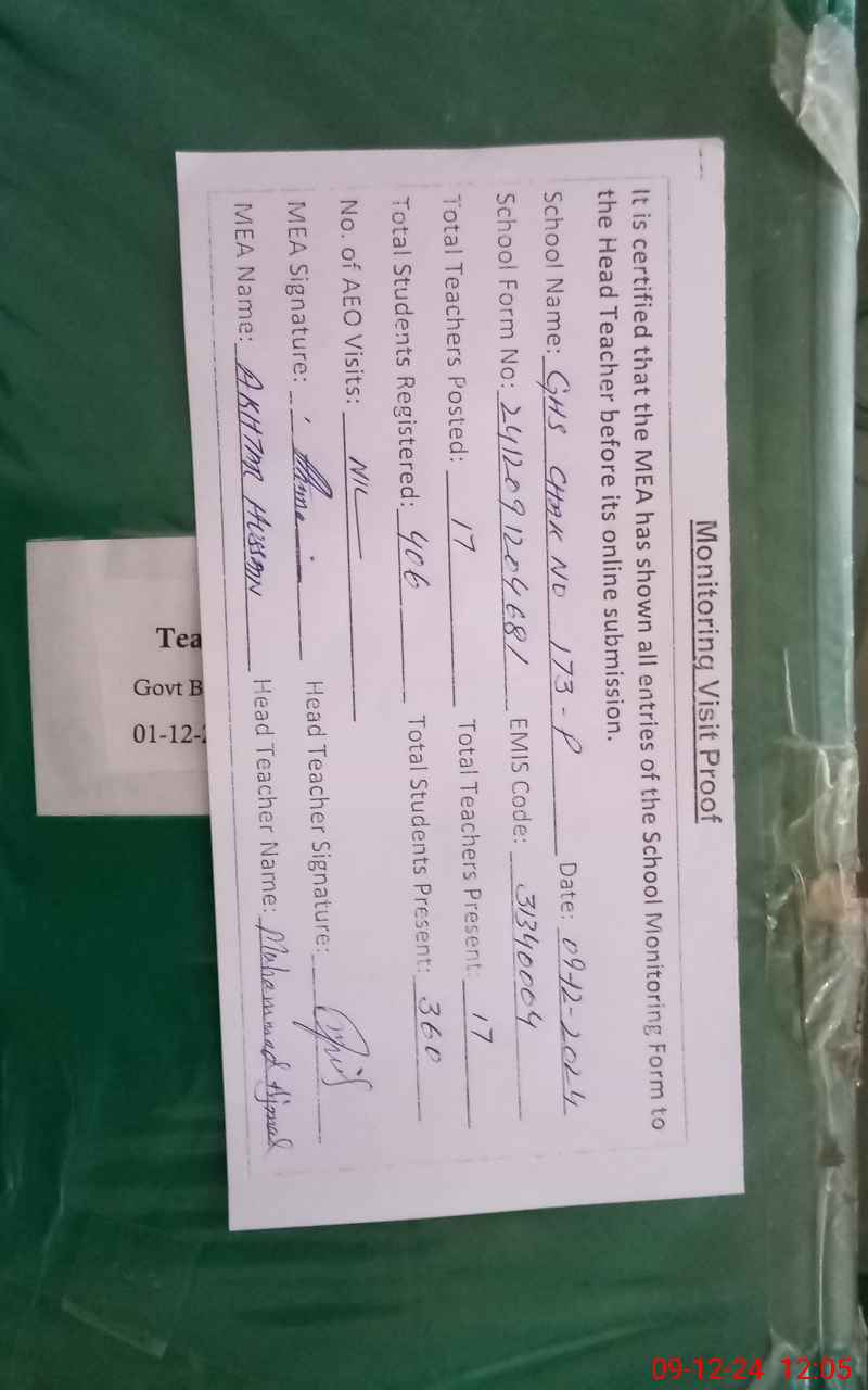 | EMIS Code: 31340004 | Name of School: GHS CHAK 173/P | |||