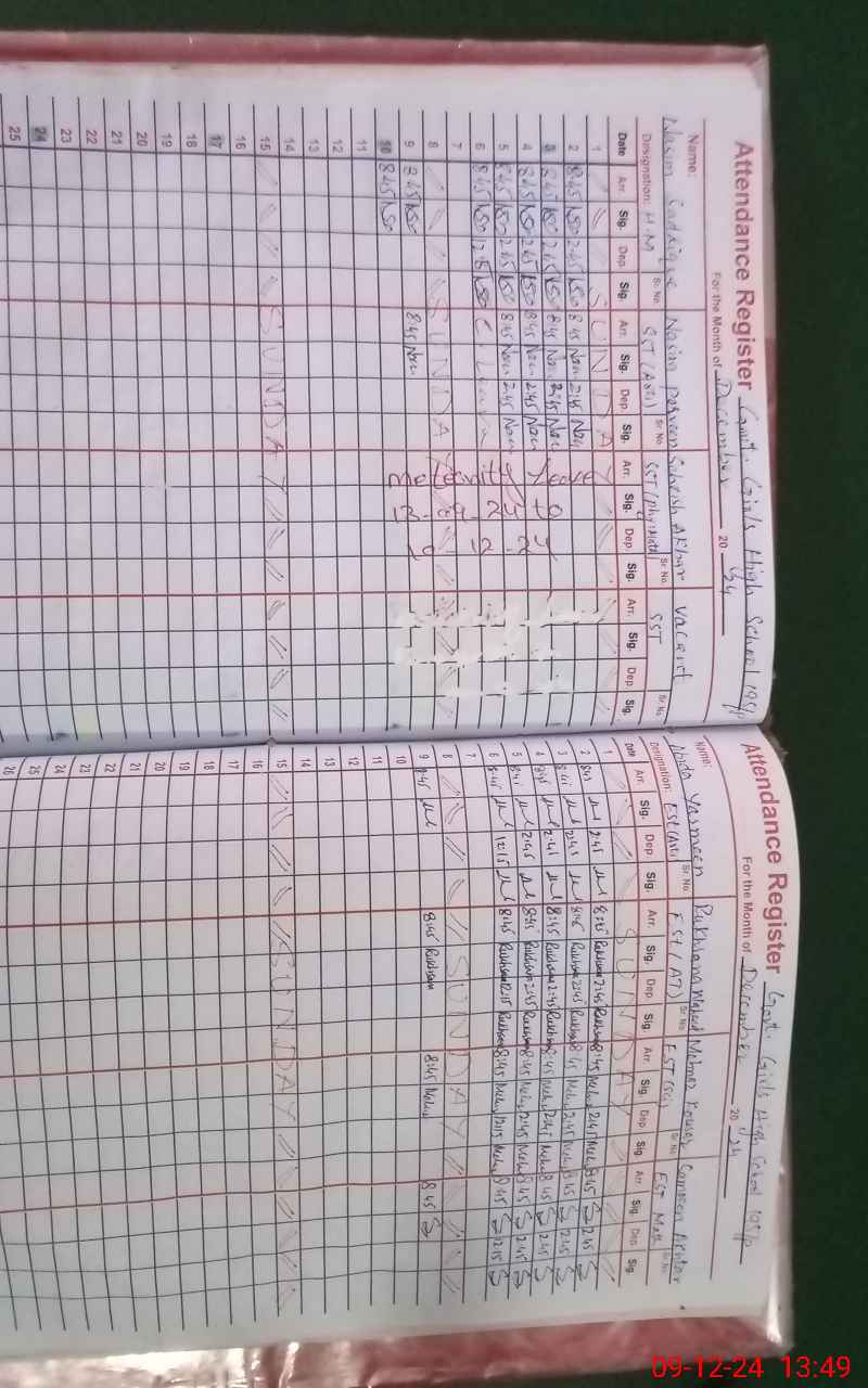 | CNIC | Full Name | Designation | R/C | Absence During Last Calender Month |