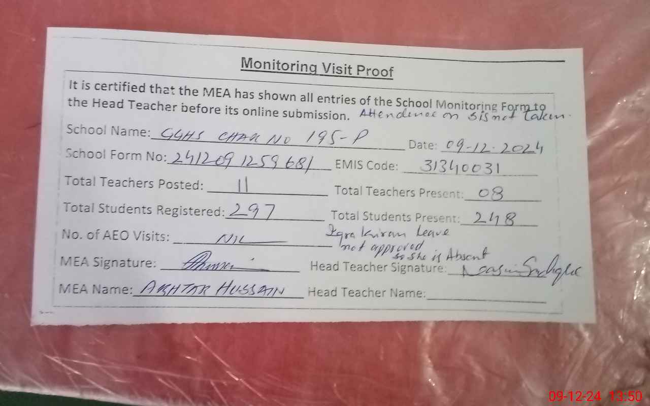 | EMIS Code: 31340031 | Name of School: GGHS CHAK NO. 195/P | |||