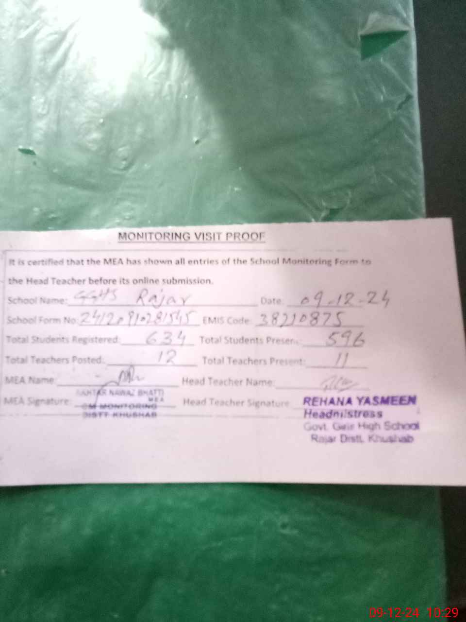 | EMIS Code: 38210875 | Name of School: GGHS RAJAR | |||
