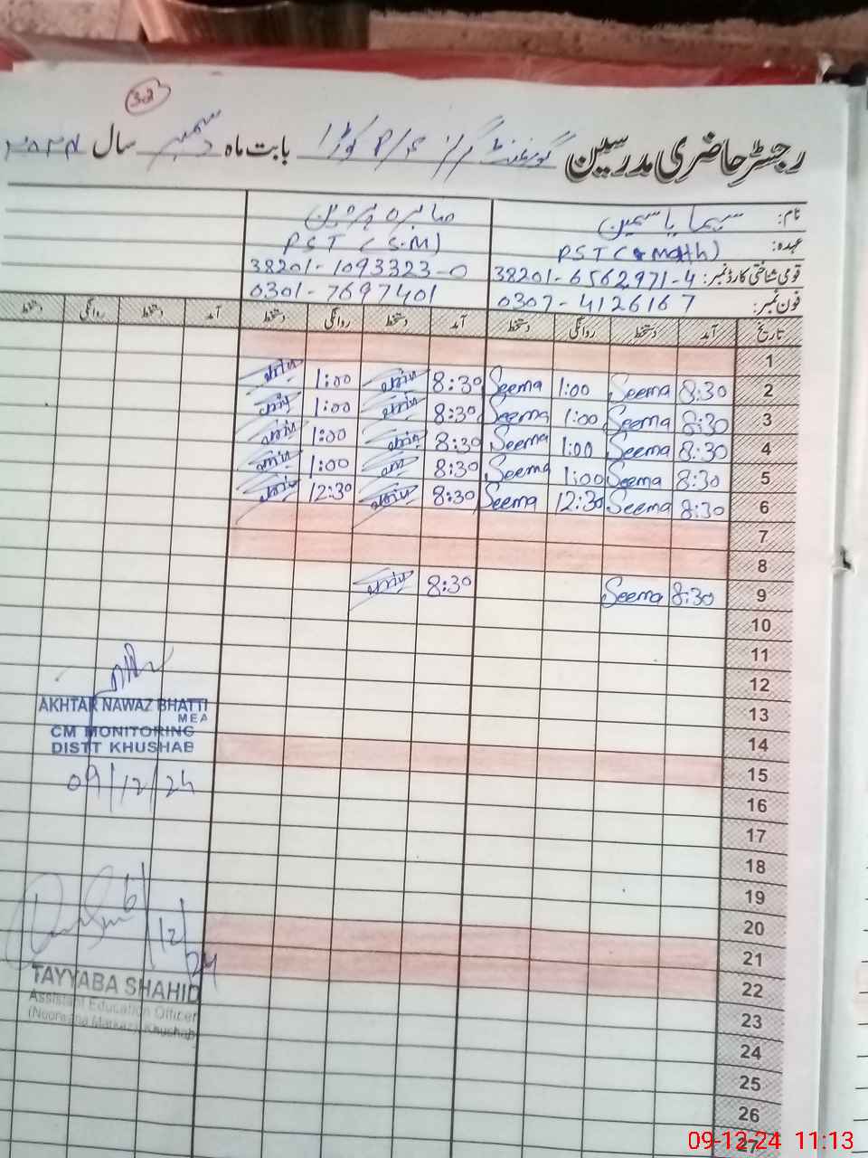 | District: KHUSHAB | Tehsil: KHUSHAB | Markaz: NOOR WANA (FEMALE) | Level: Primary | |