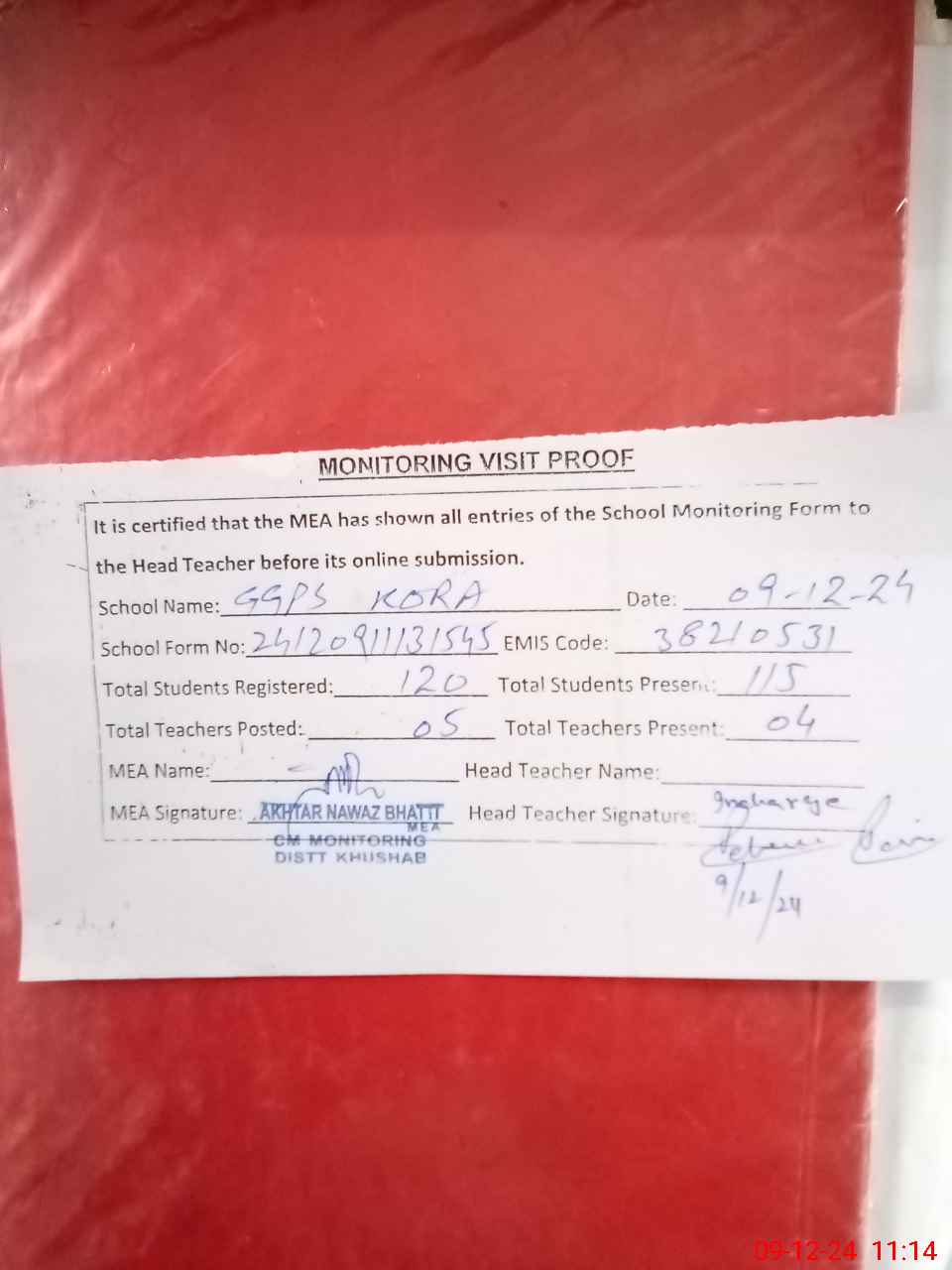 | EMIS Code: 38210531 | Name of School: GGPS KORA | |||