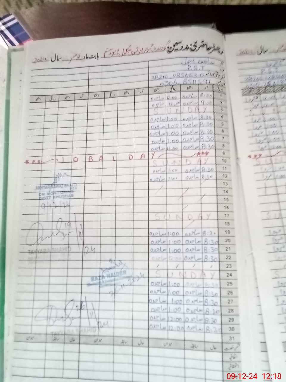 | CNIC | Full Name | Designation | R/C | Absence During Last Calender Month |