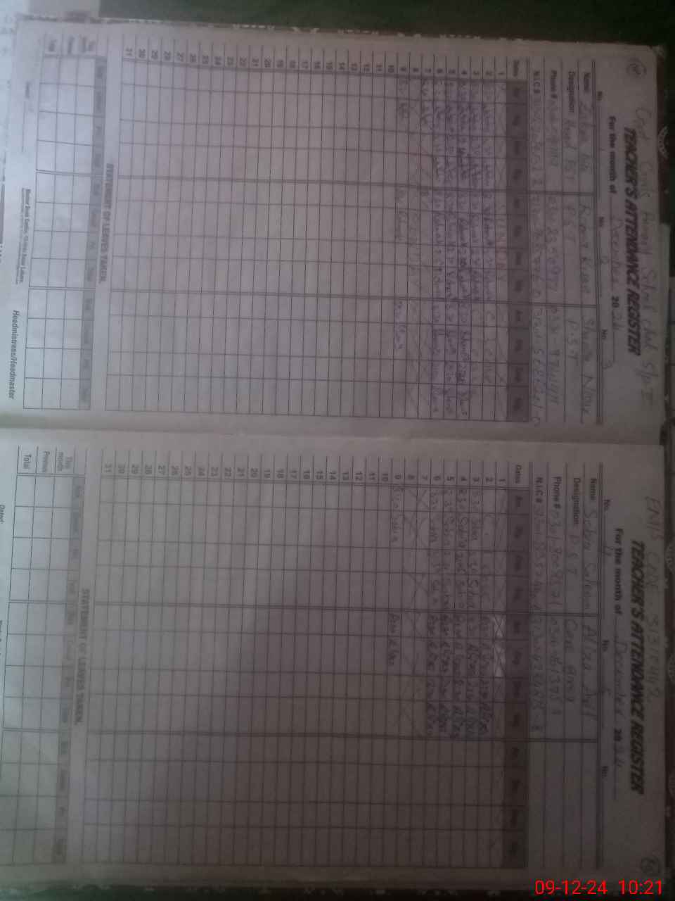 | CNIC | Full Name | Designation | R/C | Absence During Last Calender Month |