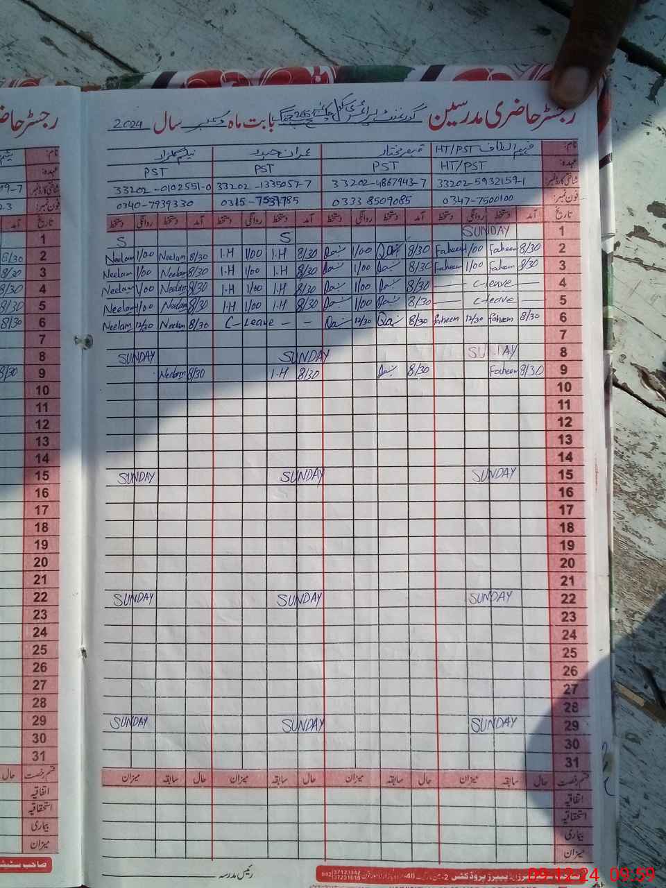 | Name: IJ**** HU**** Designation: (School Headmaster's/Headmistress's) PSf Phone/Cell Number: 03**** |