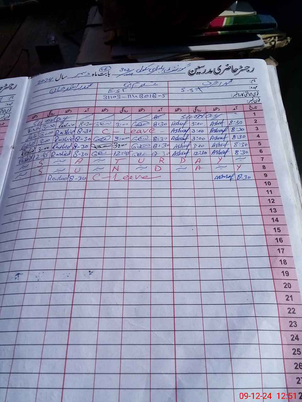 | CNIC | Full Name | Designation | R/C | Absence During Last Calender Month |