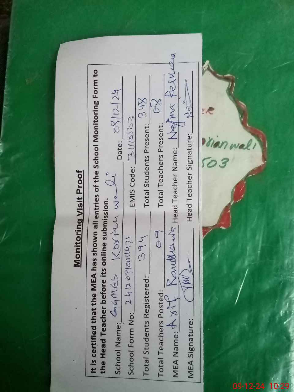 | EMIS Code: 31110503 | Name of School: GGMES KORIAN WALI | |||