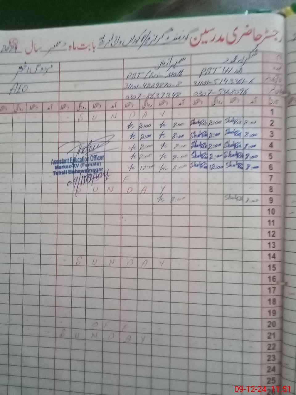 | District: BAHAWALNAGAR | Tehsil: BAHAWALNAGAR | Markaz: BWN.15-FEMALE | Level: Primary | |