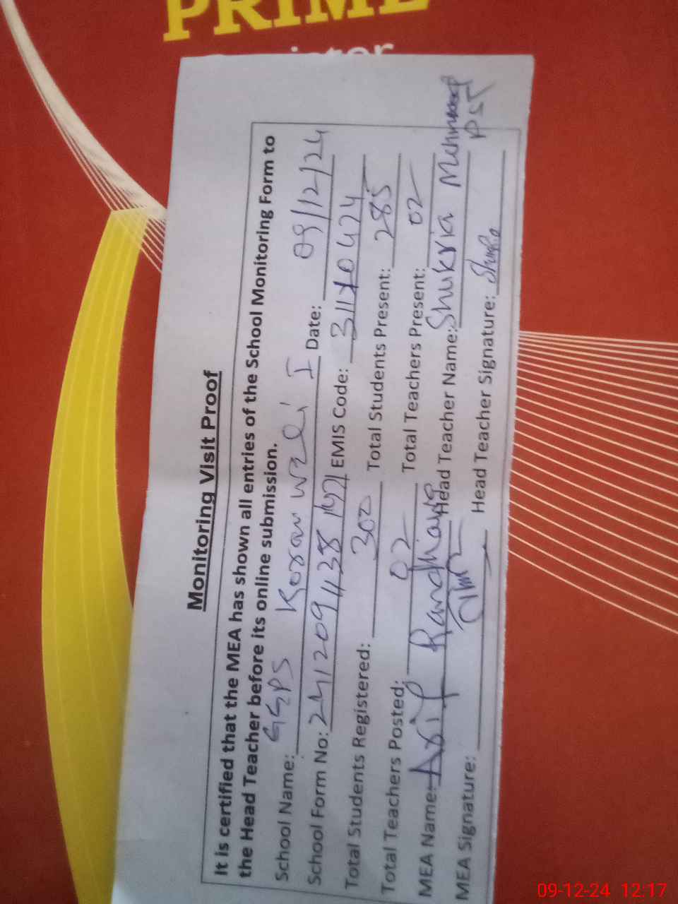 | EMIS Code: 31110474 | Name of School: GGPS KORIAN WALI NO 1 | |||