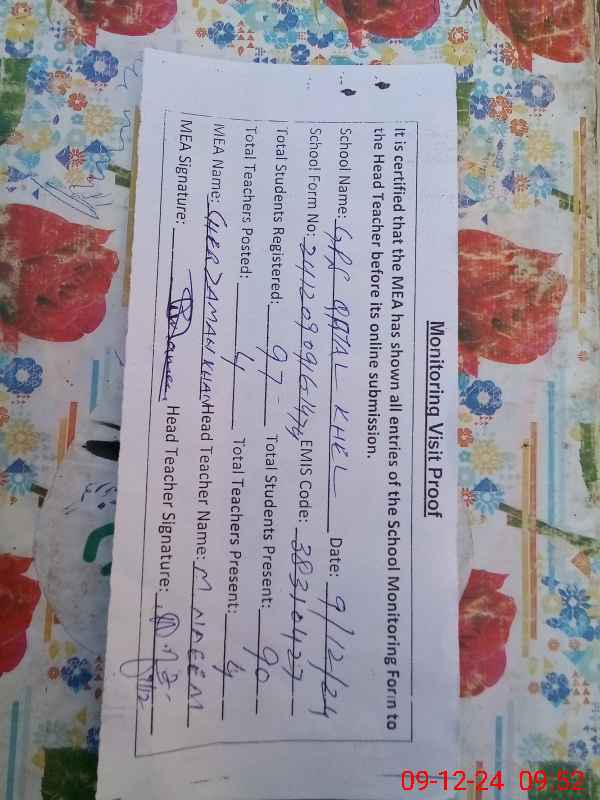| EMIS Code: 38310427 | Name of School: GPS QATAL KHEL | |||