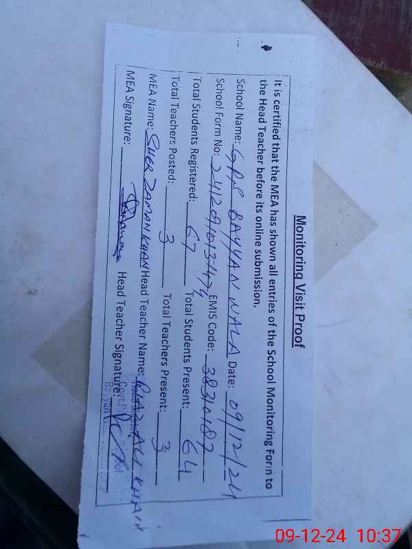 | EMIS Code: 38310187 | Name of School: GPS BAYYAN WALA | |||