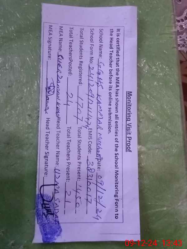 | EMIS Code: 38310017 | Name of School: GGHS KAMMAR MUSHANI | |||