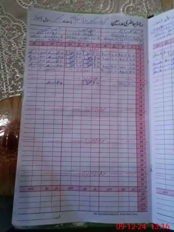 | CNIC | Full Name | Designation | R/C | Absence During Last Calender Month |