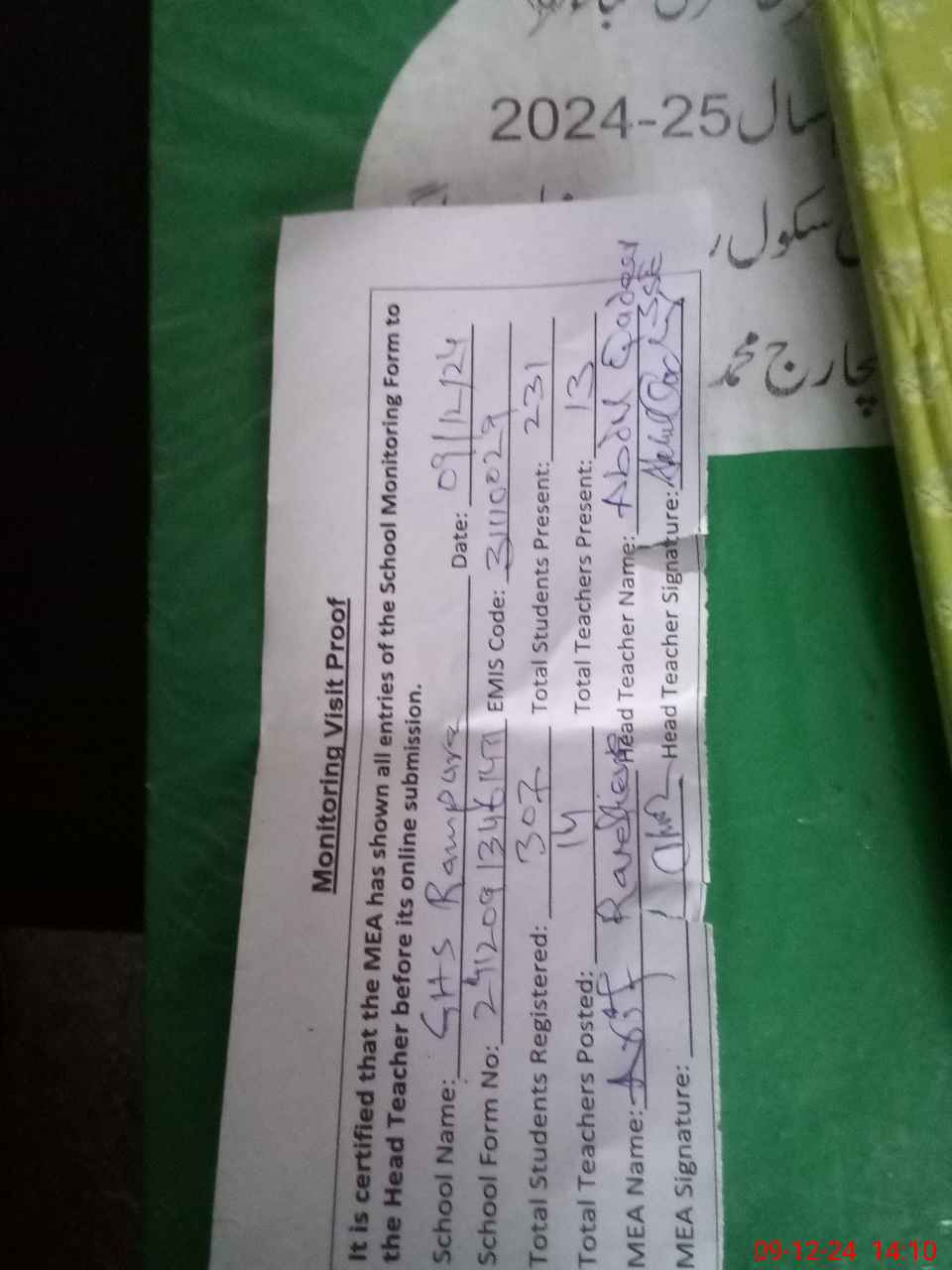 | EMIS Code: 31110029 | Name of School: GHS RAM PURA BAHAWAL NAGAR | |||