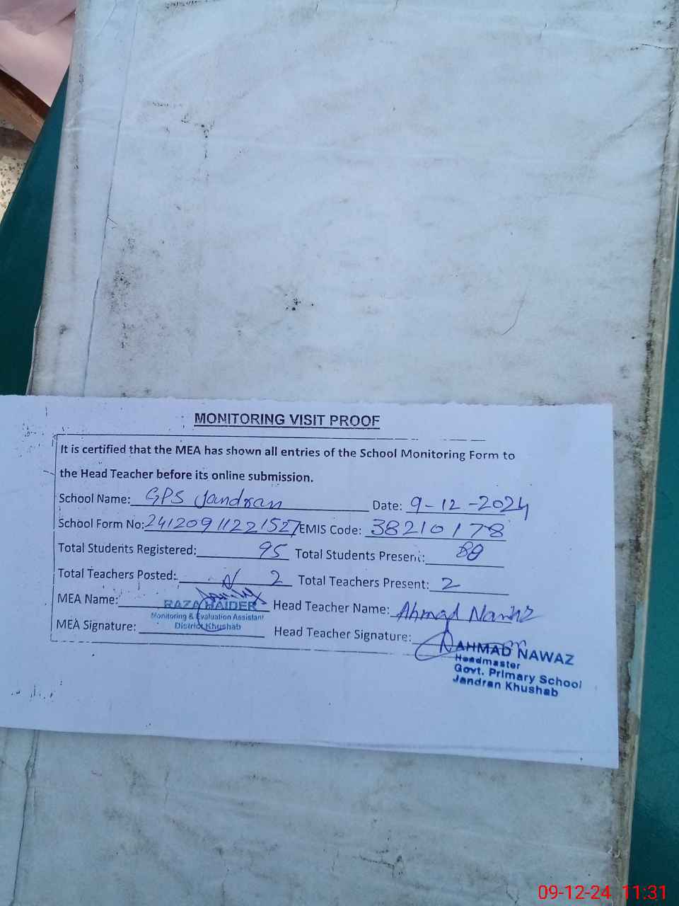 | EMIS Code: 38210178 | Name of School: GPS JANDRAN | |||