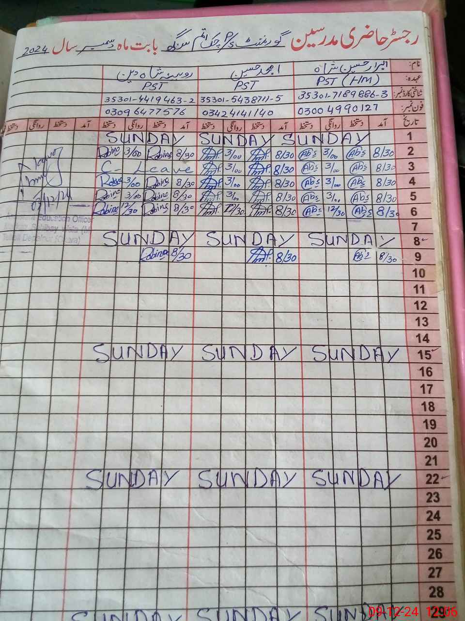 | Name: AB**** HU**** SH**** Designation: (School Headmaster's/Headmistress's) PST Phone/Cell Number: 03**** |