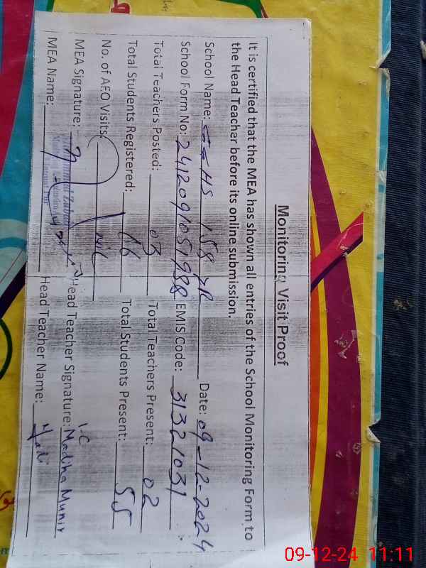| Certified that this School was Inspected by the Undersigned MEA/DMO Today and the Information Stated Above is as Per Record. | |||||